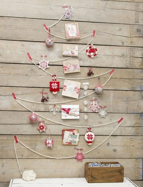 Эту фотографию нашла когда искала идей для настенной елки. Такие елки-наклейки можно купить здесь, если у вас нет совсем времени и желания, а праздника все равно хочется, это идеальный вариант в таком случаи.
